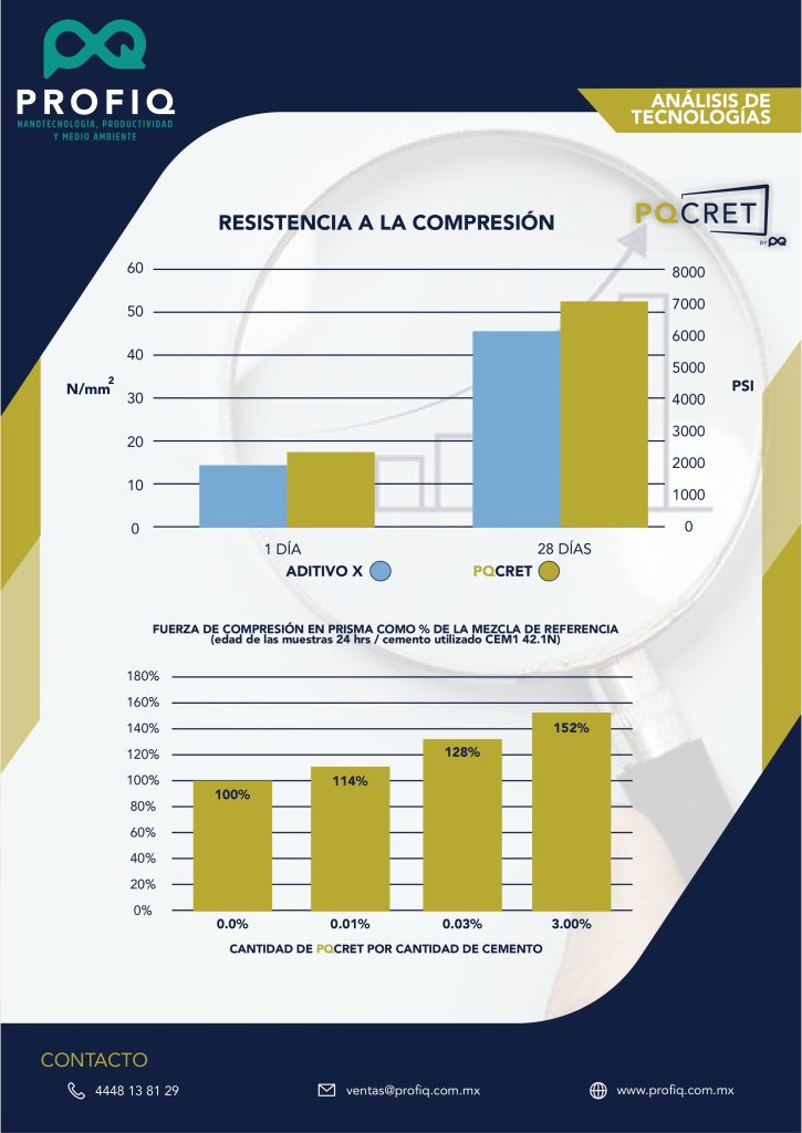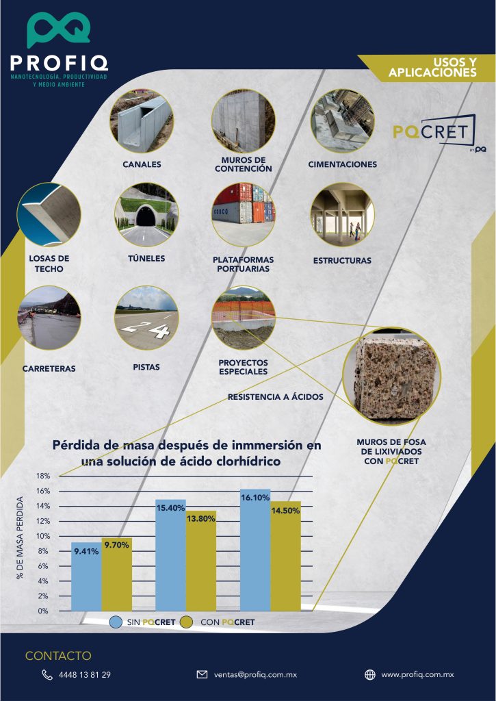 PQCRET como aditivo esta especificamente desarrollado para mejorar las propiedades de un concreto o un mortero, modificando la dinamica y quimica del proceso de hidratacion del cemento en la mezcla.